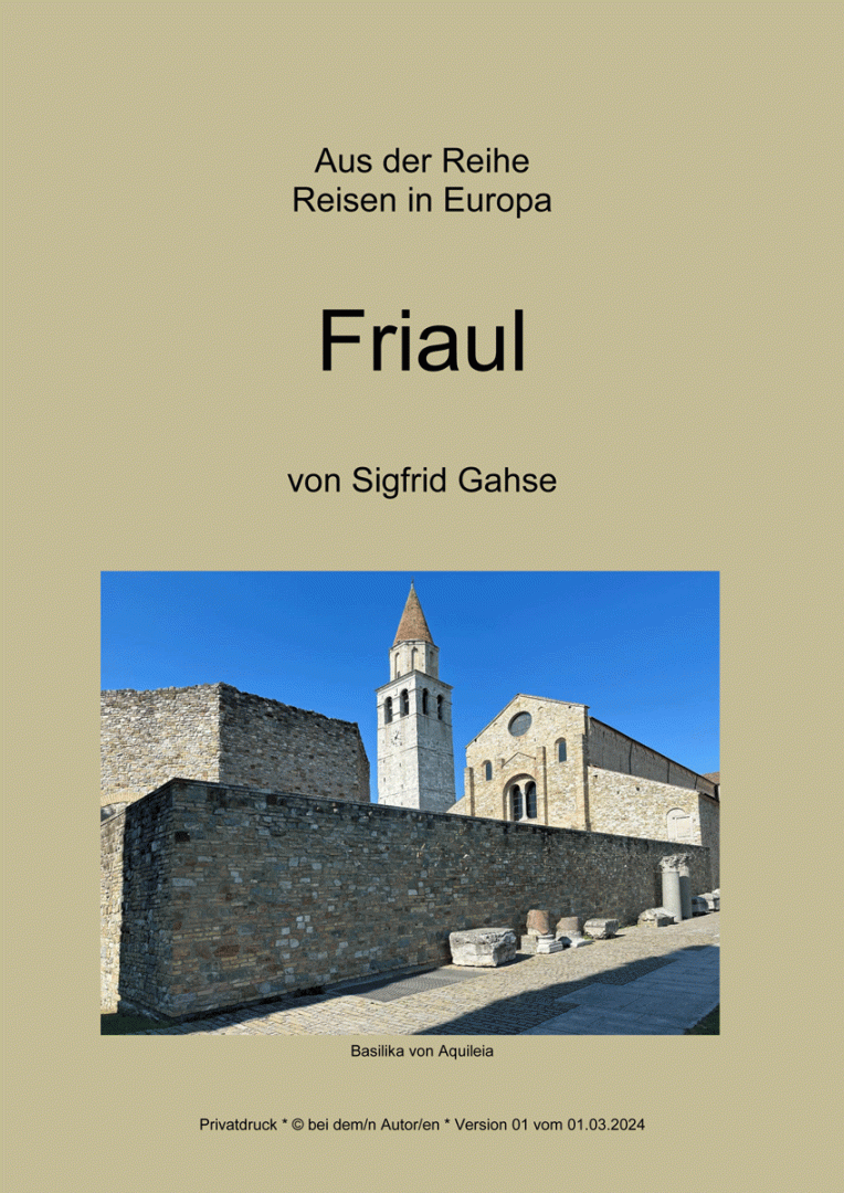 Wir, Dora und ich, wohnten zentral in Udine und hatten dort eine Penthouse-Wohnung. Wenn wir Besichtigungen in Udine vornehmen wollten, gingen wir per pedes zu den Zielen. Die umliegenden Städte fuhren wir mit unserem Auto sternförmig an. Die Reise begeisterte uns besonders wegen der Italiener, die hilfsbereit, freundlich und gastfreundlich waren. Wir schauten uns folgende Städte an: Triest (Adria), Grado (Grachten), Aquileia (Basilika), Palmanova (Stadtplan), Spilimbergo (Mosaike), San Daniele del Friuli (Prosciutto), Cilidale del Friuli (Dom, Ponte del Diavolo) und das Weinbaugebiet Collio. Das ergab 1.456 km incl. An- und Rückreise, intern 356 km.