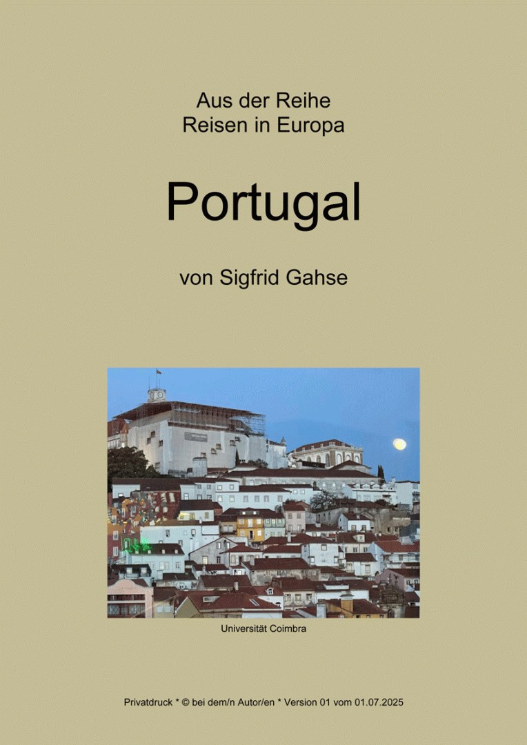 Wir, Dora und ich, flogen von Stuttgart nach Porto und holten uns in Porto ein gemietetes Auto (nagelneuer Polo) ab, um unsere geplanten Ziele in Nordportugal, Zentralportugal und Lissabon zu erreichen. Das ergab 878 km. Unsere Tour war: Porto (4 Nächte) - Braga - Guimaraes (2) - Coimbra (2) - Tomar - Lissabon (3) - Aveiro - Flughafen Porto (1). Alles verlief reibungslos. Uns gefielen die Städte sehr gut (Lissabon gut). Wir hatten viele Führungen. Zu Fuß sind wir viele Treppen gestiegen, was uns körperlich auch gut tat. Bemerkenswert waren die Portugiesen, die uns zeigten, dass man ein Leben auch ohne Hektik gestalten kann, indem man freundlich ist, hilfsbereit, zuhört und mitdenkt. Man hat ein Verständnis für das Andere bei einem Fremden, keine Überheblichkeit, viel Herz. Das Land hat alte Tradition, Kultur und Bildung.