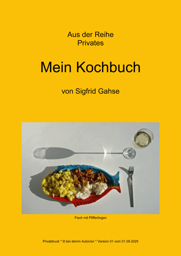 ist heute in erster Auflage herausgekommen. Es sollen damit vorwiegend Singles angesprochen werden, die etwas kochen möchten, aber keine Ambitionen auf einen Stern haben. Den wesentlichen Input dazu habe ich von meiner Lebensgefährtin Dora Werner erhalten, die ohne Rezept kocht und von der ich eine abgespeckte Version nach meinem Stil übernommen habe.